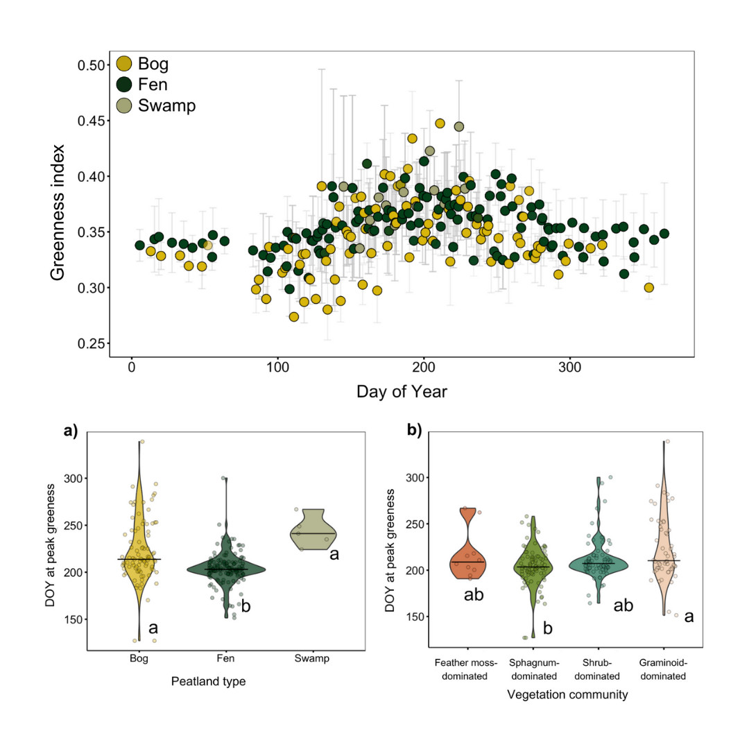 Bogs reached peak greenness around 10 days later than fens, and these seasonal patterns were closely linked to vegetation type and local energy conditions, highlighting the importance of small-scale differences in how peatlands function and store carbon.